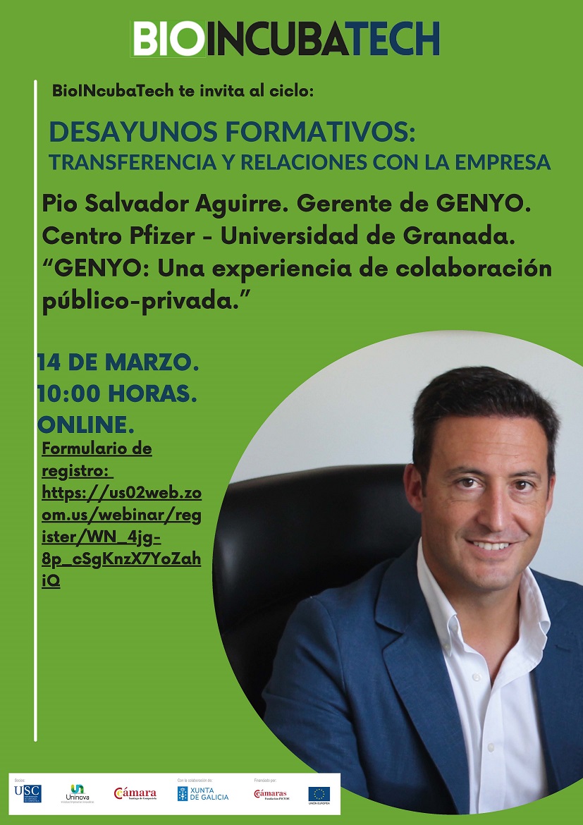 En esta sesión, Pio Salvador Aguirre abordará el establecimiento de relaciones con empresas y sus particularidades desde la experiencia de la gerencia de este importante centro de investigación, GENYO.