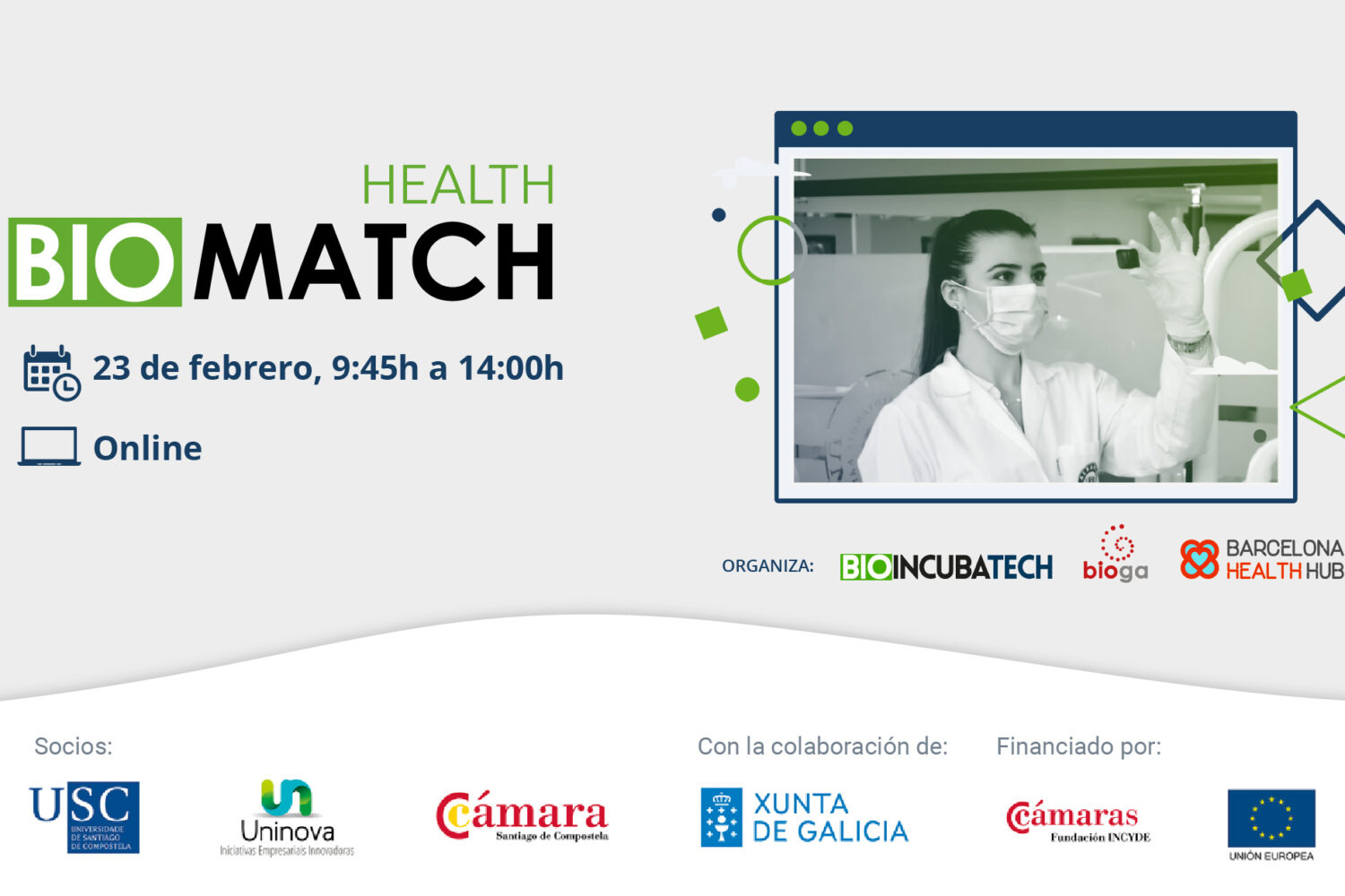 Bioga y la Incubadora de Alta Tecnología BioIncubaTech organizan el Health BioMatch, un evento de networking 100% online para fomentar la generación de relaciones profesionales y proyectos colaborativos a través de citas rápidas entre profesionales del sector biotech y afines.